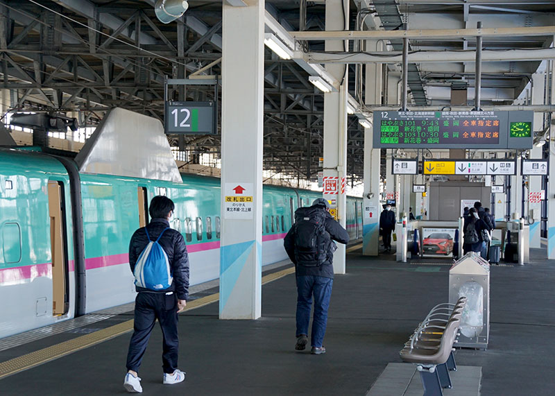 JR北上駅では同日午前、東北新幹線下り線ホームで子供連れや大きな荷物を持った帰省客、観光目当ての乗客が降り立ち、上り線ホームでも目的地へ向かう乗客が見られたが、例年のこの時期よりも「全然少ない」(駅関係者)状況。妻と共に東京都内から2泊3日で訪れた男性(47)は「夏油高原スキー場に滑りに来た。だいぶ雪があるみたいで、パウダースノーを楽しみにしている」と語りつつ、「新幹線の席はガラガラだった。スキー場や知り合いの宿は悲鳴を上げているが、それも表立って言えないようだ」と新型コロナの影響を危惧していた。