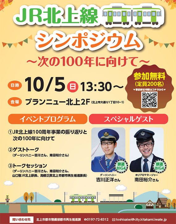 JR北上線利用促進協議会が主催する北上線シンポジウムは、5日午後1時30分から北上市大通りのブランニュー北上で開かれる。鉄道に詳しいゲストを交えたトークセッションなどを通じ今後の利用促進方策を探る。