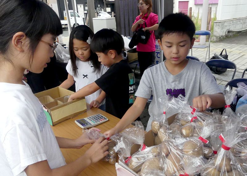 地元の児童生徒や学生によるチャレンジショップも人気で、市立花巻小学校2年生は学校の畑で育てたジャガイモなどの販売を体験した。