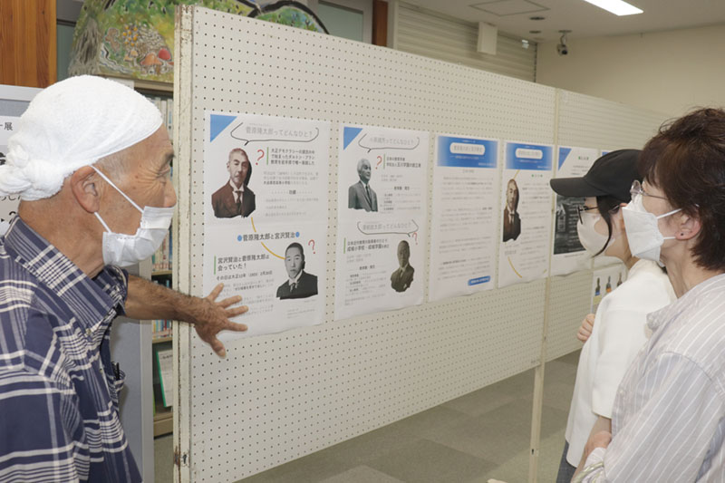 大迫図書館のギャラリー展「菅原隆太郎と宮沢賢治~文教地区大迫がもたらした出会い」は、花巻市大迫町の同館で開かれている。同町出身の教育者菅原隆太郎と同市出身の童話作家宮沢賢治の関わり、市立大迫小学校で当時行われていた自由教育などを紹介し、賢治の創作に与えた影響を探っている。29日まで。入場無料。