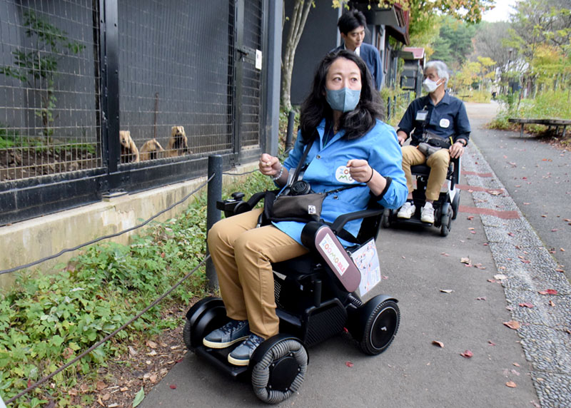 盛岡市動物公園「ZOOMO(ズーモ)」(辻本恒徳園長)は14日、電動車椅子で園内を移動できる新たなサービス「ZOOMO―BILE(ズーモービル)」の運用を始めた。足腰が不自由な人でも高低差がある園内を自由に行き来できるほか、歩行スピードに合わせた走行が可能なことから歩行者と一緒に行動できる。同園は「たくさんの人に使っていただけるようにしていきたい」とし、来園者の増加を期待している。