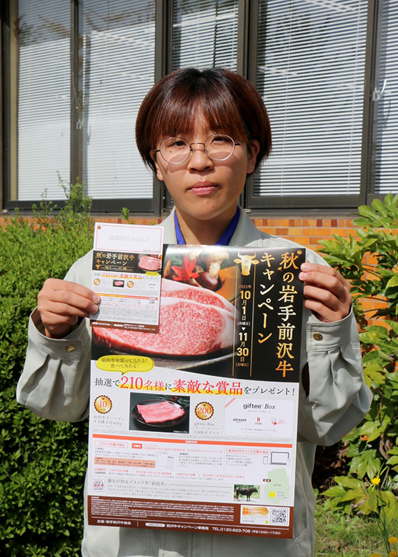 岩手前沢牛協会(会長・倉成淳奥州市長)主催の秋の岩手前沢牛キャンペーンは、本県や関東地方などの前沢牛を取り扱う同協会指定店で行われている。前沢牛を食べたり、購入したりした人が対象で、応募すると抽選で計210人に前沢牛などが当たる。11月30日まで実施する。