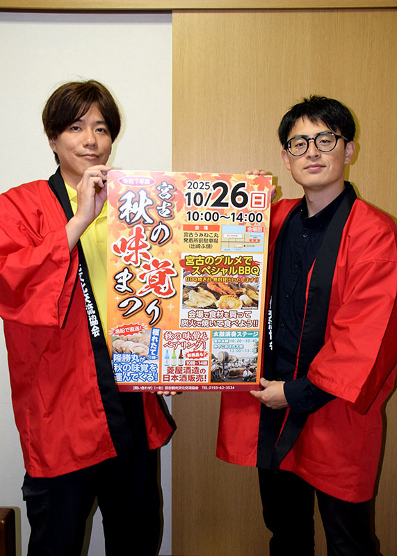 宮古秋の味覚まつり(宮古観光文化交流協会主催)は、26日に宮古市の宮古うみねこ丸発着所前駐車場(出崎埠(ふ)頭)で開かれる。取れたてのホタテやサンマといった海産物をはじめ、肉や野菜などを販売する。「宮古のグルメでスペシャルBBQ」と銘打ち、今年も無料で利用できる焼き台を設置することにしており、購入した食材をその場で焼いてすぐに味わうことができる。