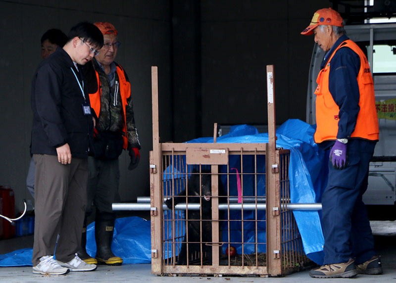 奥州市水沢字八反町のNOSAI岩手県南基幹センターで21日、敷地内の車庫に侵入した体長約70センチの子グマ1頭が捕獲された。子グマは20日に車庫に入り、関係者がわなを仕掛けて誘導を試みたが居座ったままだった。市が対応を協議した結果、山中に放した。
