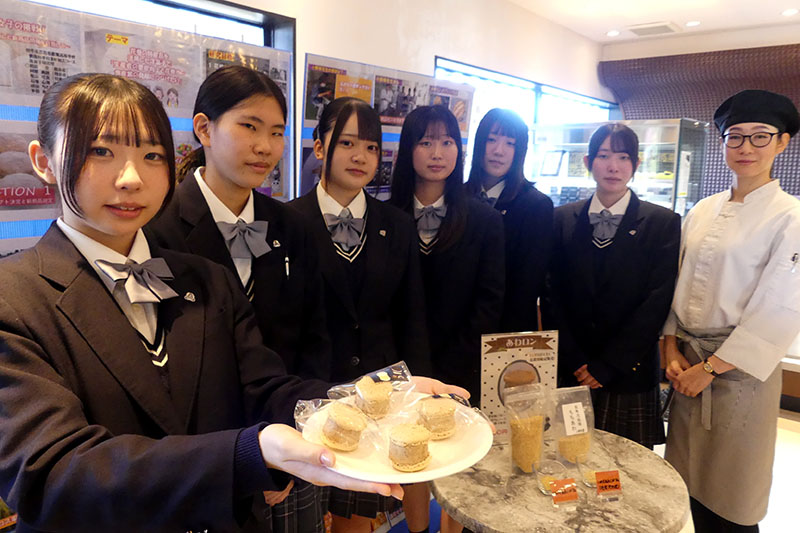 県立花巻農業高校(沼澤信典校長、生徒237人)の食農科学科は、本県オリジナル雑穀「いわてあわこがね」を活用した菓子「あわロン」を考案した。和洋の味わいを融合した見た目も愛らしいスイーツで、花巻市星が丘のブルージュプリュス花巻店(高橋陽子総括マネージャー)が商品化し、数量限定で販売している。