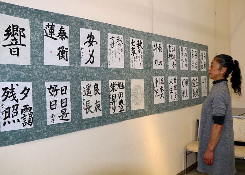 奥州市などで活動する松韻の会(松本錦龍主宰)と、晶泉書道教室(佐藤晶泉主宰)による合同作品展は、同市水沢西町のみずさわ観光物産センターで25、26日に開かれ、書に取り組む小学生から80代まで約80人の作品を展示した。