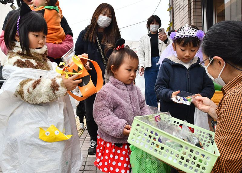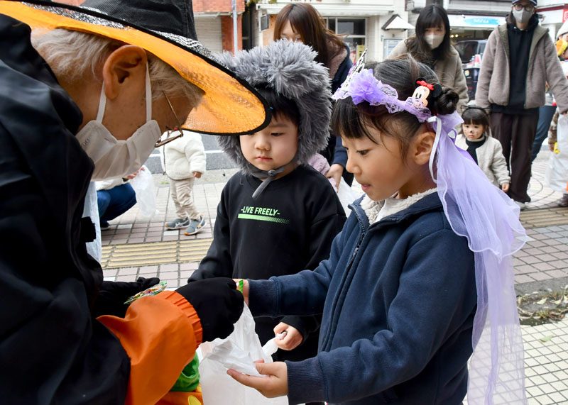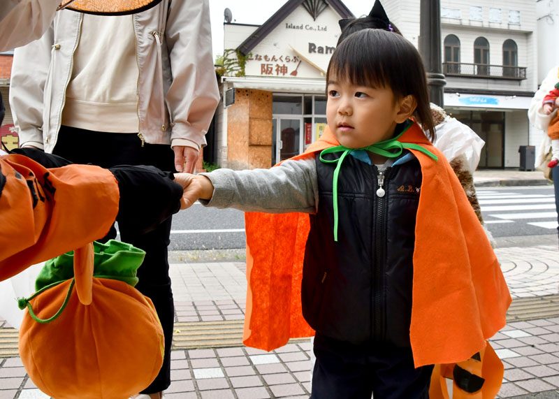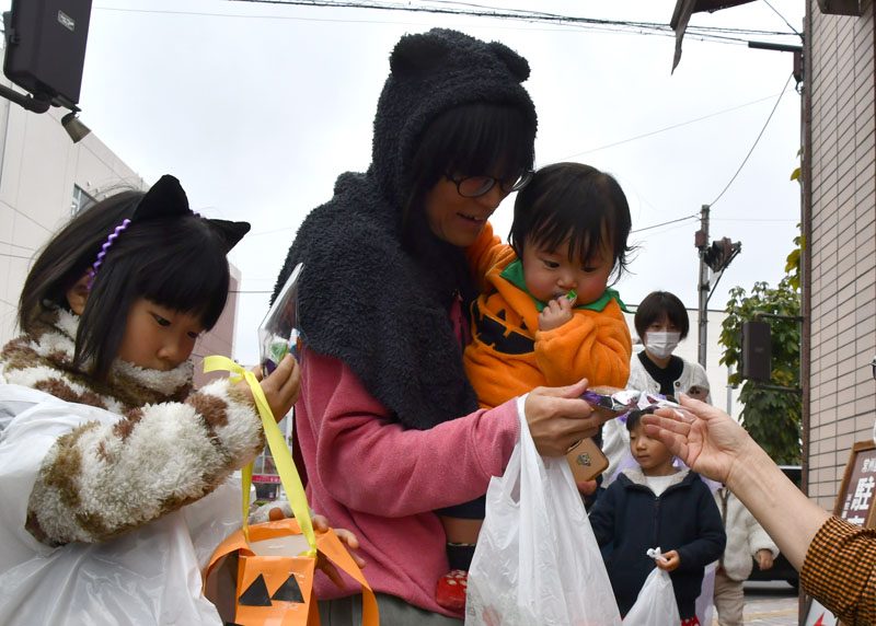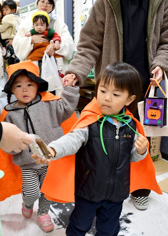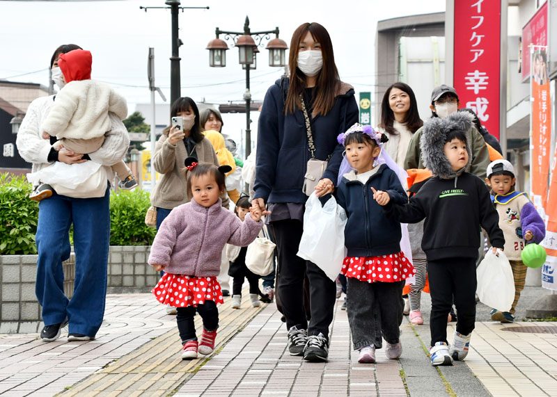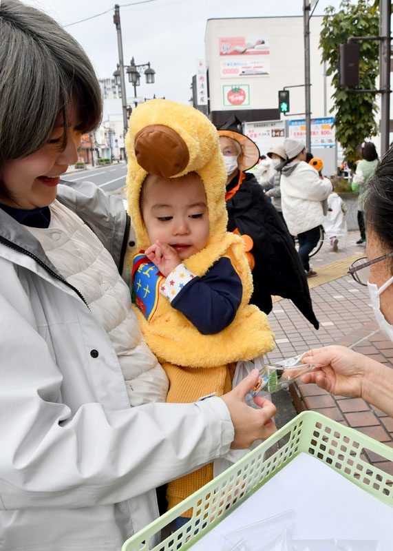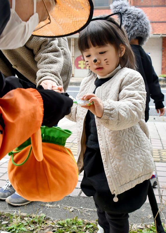 NPO法人いちのせき子育てネット(小野寺浩樹代表理事)が運営する「親子ひろば」のハロウィーンパーティーは31日、一関市大町地内で開かれた。仮装をした子どもたちが同ひろばのあるなのはなプラザや近隣の商店街を練り歩き、菓子をもらって秋の行事を楽しんだ。