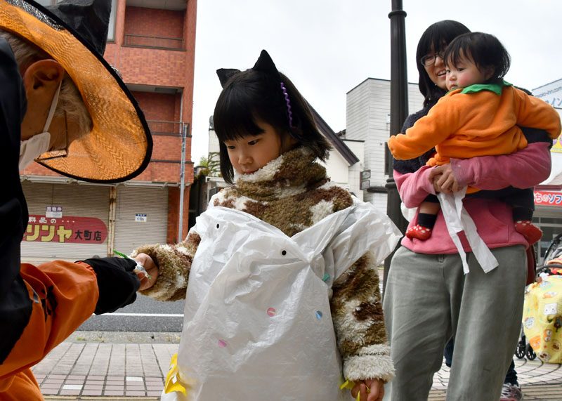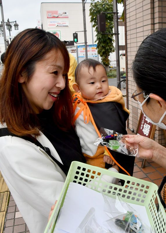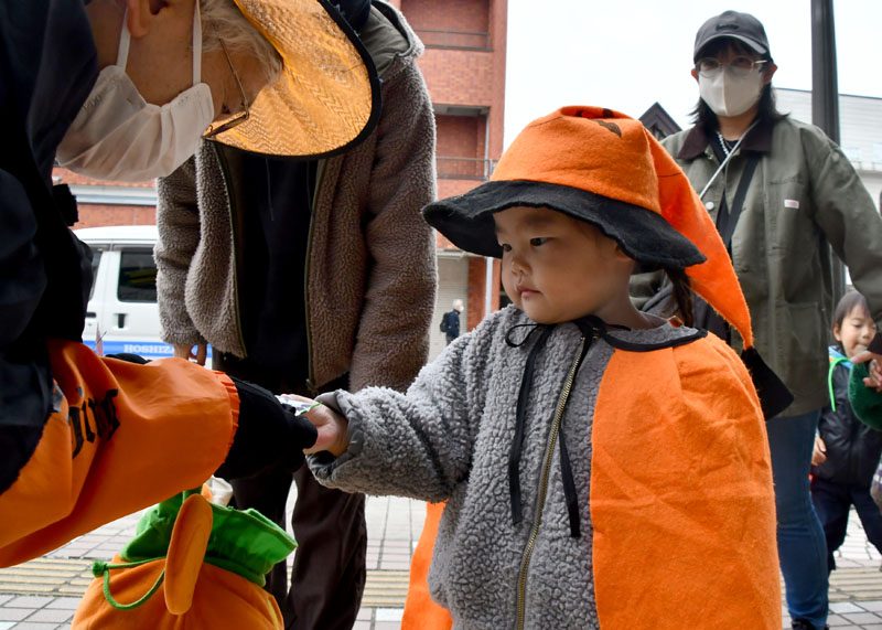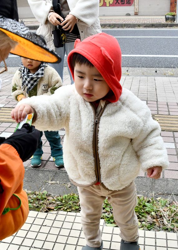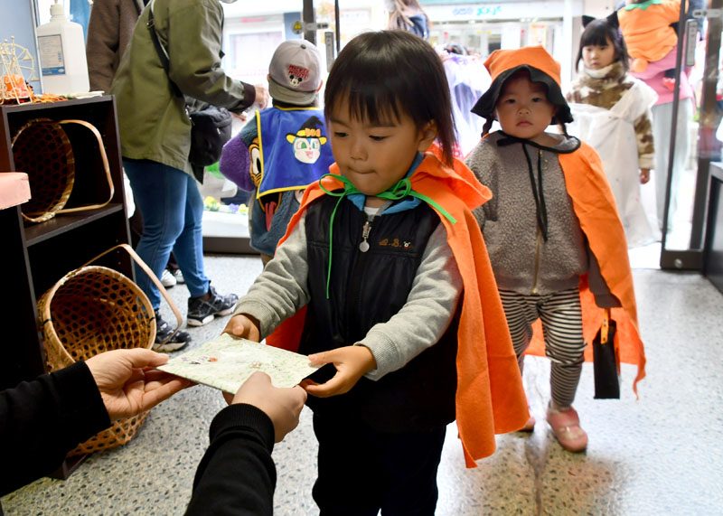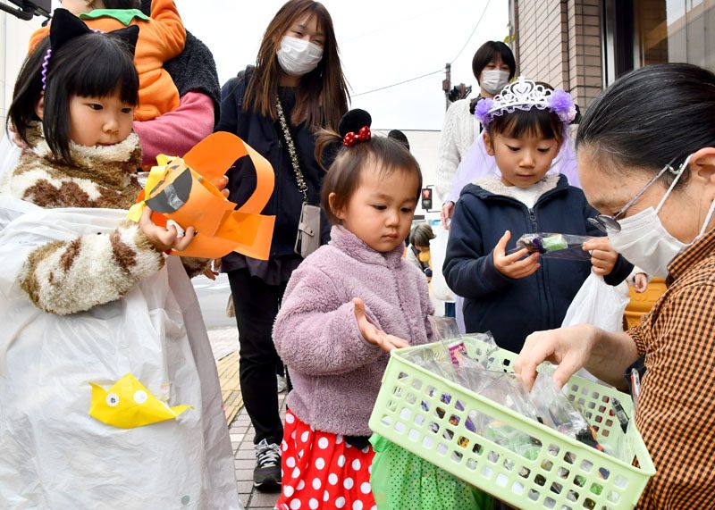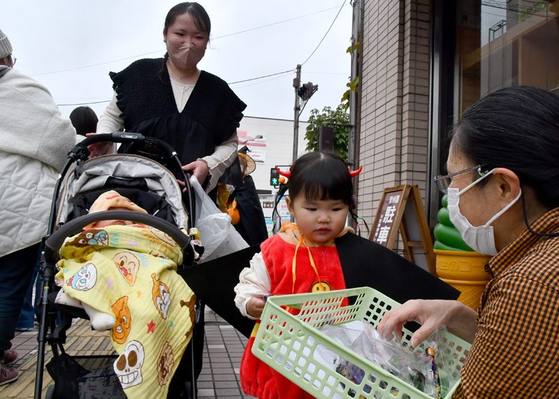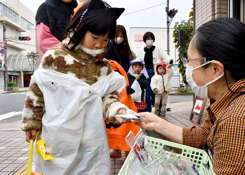 NPO法人いちのせき子育てネット(小野寺浩樹代表理事)が運営する「親子ひろば」のハロウィーンパーティーは31日、一関市大町地内で開かれた。仮装をした子どもたちが同ひろばのあるなのはなプラザや近隣の商店街を練り歩き、菓子をもらって秋の行事を楽しんだ。