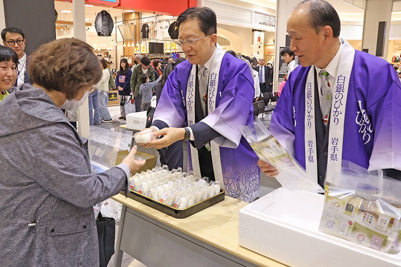 県産新米「おいしい」 知事らトップセールス 盛岡でフェア