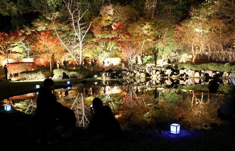ライトアップは7~9日の午後5時30分~8時(最終入場は同7時30分)。入場料は夜間特別料金で中学生以上800円、小中学生400円、未就学児無料。奥州市民と障がい者は料金を割り引く。紅葉情報は同園ホームページに掲載している。
