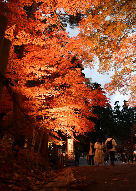 宵の参道に錦の帳 平泉・中尊寺 紅葉銀河
