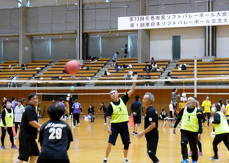 東日本ソフトバレーボール交流大会(花巻市バレーボール協会主催)は2日、同市松園の市総合体育館で初めて開かれた。東北各県から54チームが参加し、競技を楽しみながら交流を深めた。