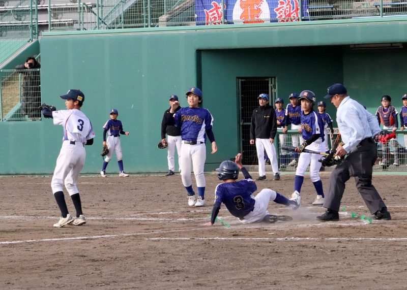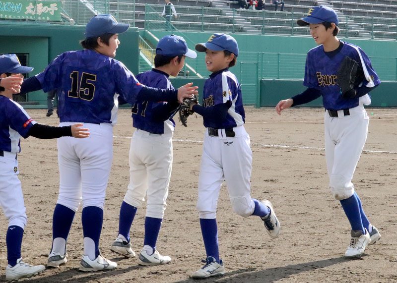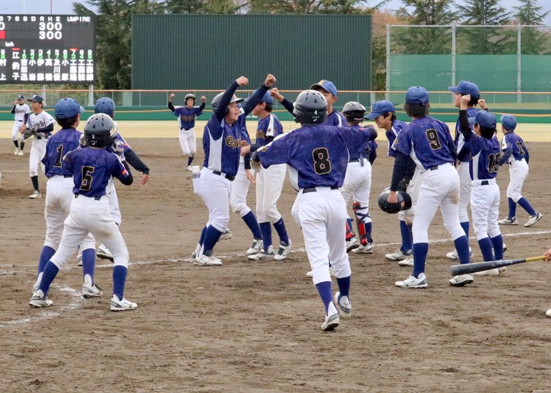 第24回岩手日日旗争奪スポーツ少年団(学童野球)交流大会は最終日の8日、北上市下江釣子のきたかみしんきんボールパークで準決勝と決勝が行われ、江釣子ジュニアスポーツ少年団(北上市)が紫波中央JBC(紫波郡)を4―3で下し、5年ぶり4度目の優勝を飾った。