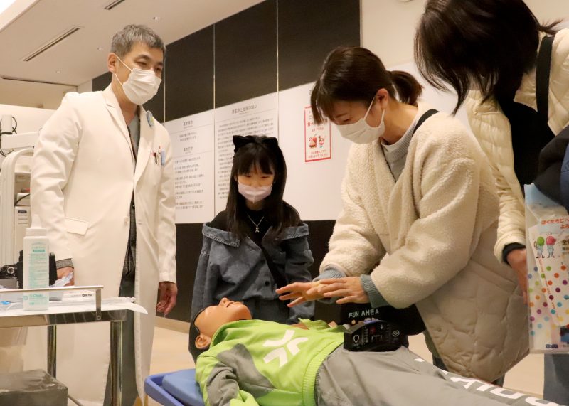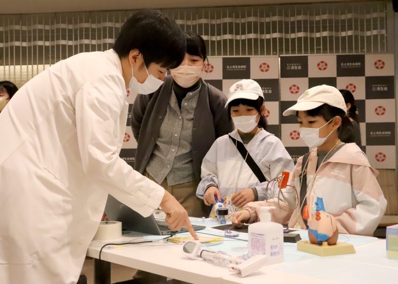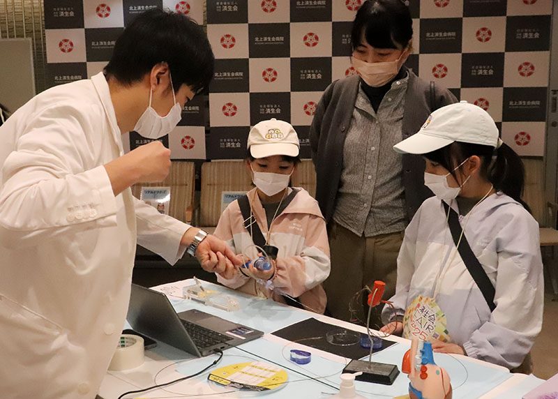 北上済生会病院の済生会フェアは16日、北上市九年橋の同院で開かれた。多くの親子連れが訪れ、医師や看護師、薬剤師らが指導する体験ブースで病院の仕事に触れた。