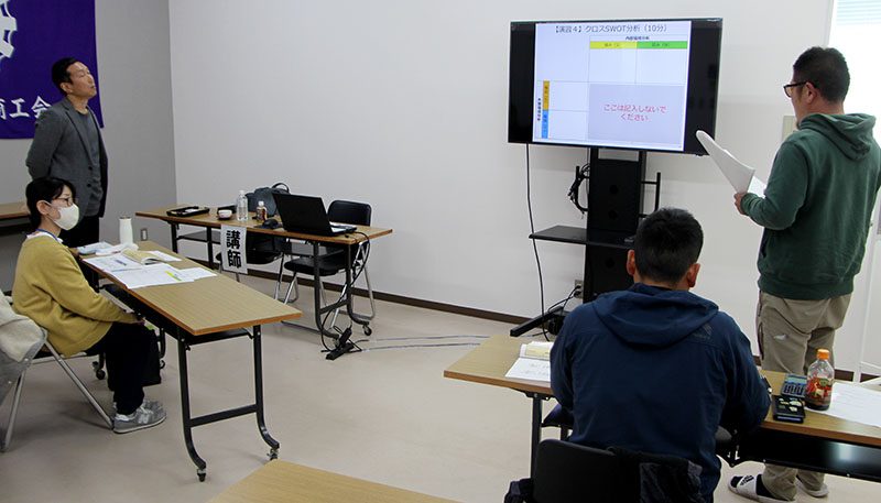 かねがさき創業塾(金ケ崎町商工会主催)は、22日まで計5回の日程で、同町西根の同商工会で開かれている。町内で創業を検討している人や創業して3年以内の人ら5人が受講。東京都のネクストマーケティング代表取締役の水下智則さんを講師に、それぞれが思い描く事業所の理想の姿の実現へ向け、マーケティングや経営戦略の立案などについて理解を深めている。
