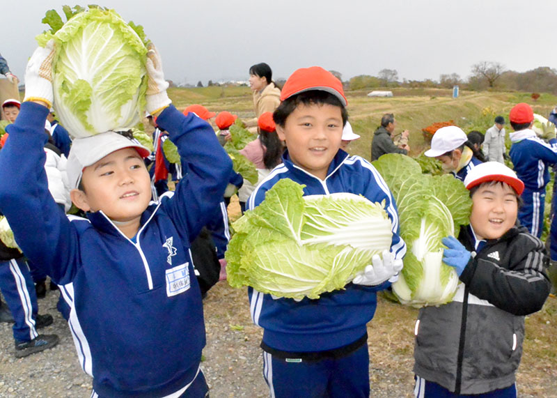ハクサイ重さずっしり 下ノ畑 南城小児童が収穫【花巻】