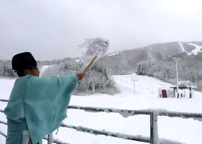 神事では同スキー場を運営する北日本リゾートの菅原三多英代表取締役らが玉串をささげ、シーズン中の安全を祈った。