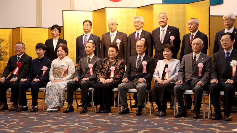 県文化スポーツ表彰の表彰式は18日、盛岡市内のホテルで行われ、本県の文化やスポーツの振興に功績のあった「県文化スポーツ表彰」の2団体、12人、日常生活に密着した活動を通じて本県の文化創造に貢献した「いわて暮らしの文化特別知事表彰」の2団体、1人をたたえた。