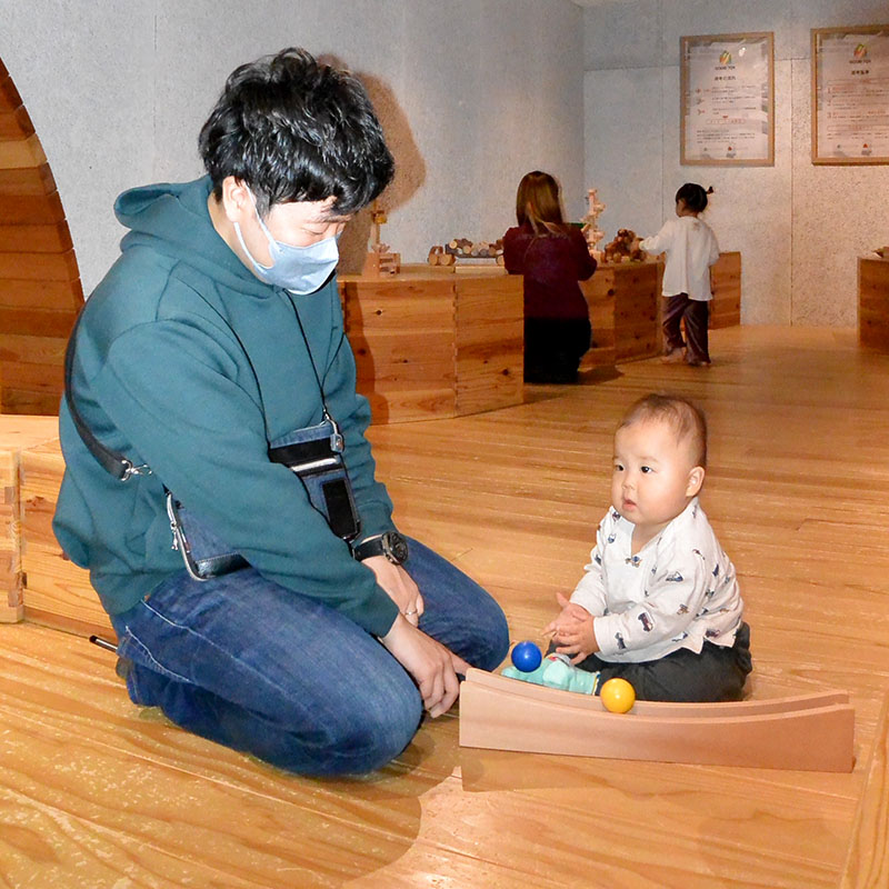 花巻市上町の花巻おもちゃ美術館(玉山恵館長)で20日、新しいおもちゃの展示がスタートした。「グッド・トイ2025」に選ばれた全50点で、親子連れらが多様な木のおもちゃに触れ、「木育」の新たな形を楽しんでいる。