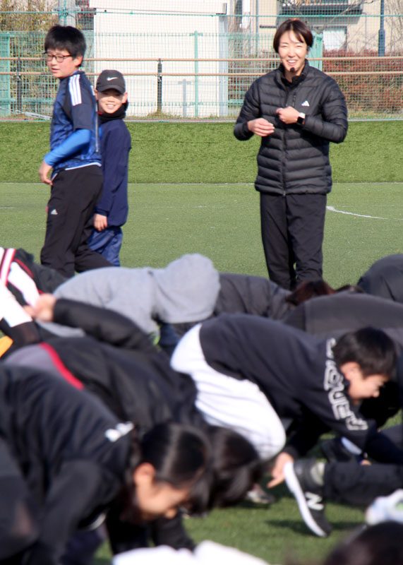 教室では速く走るための腕の振り方や足の踏み込み方などに関し助言したほか、瞬発力などを高めるトレーニング法を実技指導。「走ることはいろいろなスポーツにとって基本の動作になるので、教室で覚えたトレーニング法を続けてもらえたらうれしい」と話した。