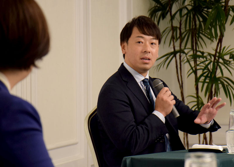 花巻市の富士大開学60周年記念祝賀会(同大校友会主催)は11月29日、盛岡市内のホテルで開かれた。同大硬式野球部を率いる安田慎太郎監督(40)がクロストークに登場。「毎年プロ野球選手を輩出したい。2~3年で日本一を取りたい」と今後の目標を語った。